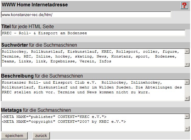 Jede einzelne Webseite erhält automatisch den hier eingegebenen Titel. In den Internet-Browsern wird dieser Titel in der Regel immer in der Kopfzeile angezeigt.