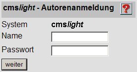 cmslight LoginAuthentifizieren Sie sich als berechtigter Benutzer |